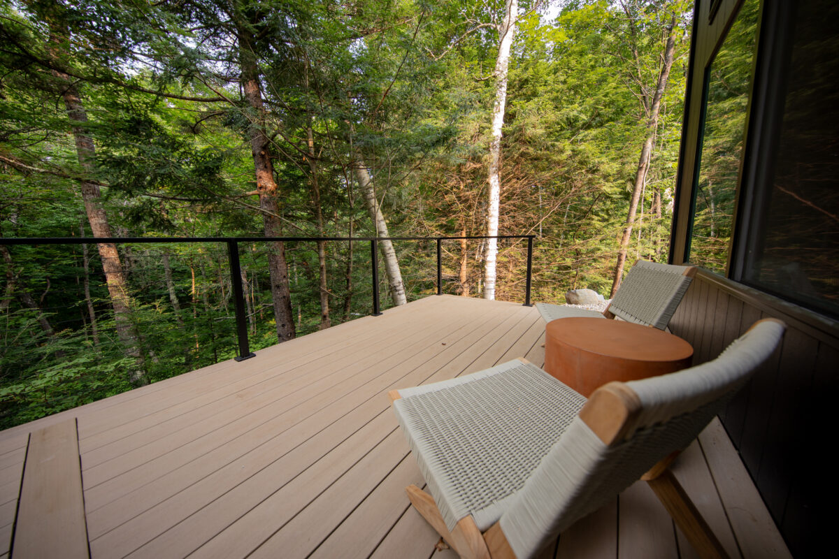 Inside, you’ll find a bright living space with a 65” Smart TV, two comfy bedrooms (KING + QUEEN, each with Smart TVs), and a fully stocked kitchen with a live-edge breakfast bar. Board games, yoga mats, and Maine-inspired cookbooks make staying in just as inviting as going out.
